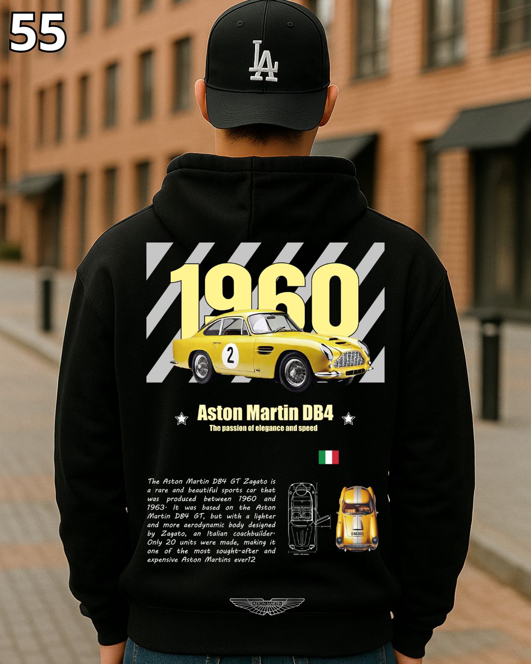 🏁 Hoodie Urban "Auto 1960 Aston Martin DB4" – Edición Negra Premium 🏁