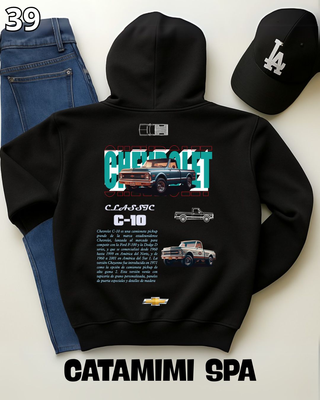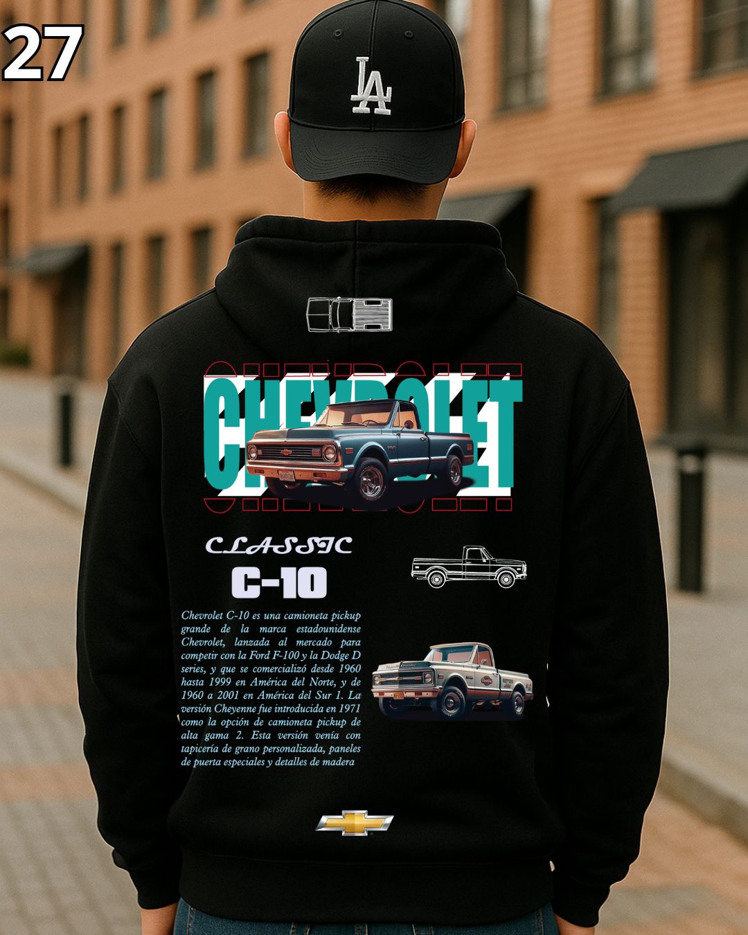 🏁 Hoodie Urban "Auto Chevrolet C-10" – Edición Negra Premium 🏁